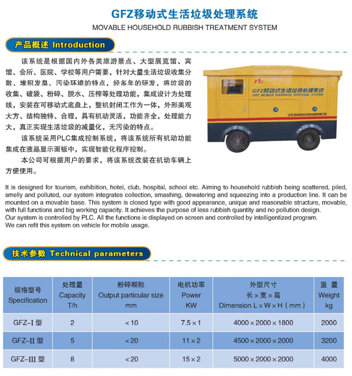 GFZ移動(dòng)式生活垃圾處理系統(tǒng)