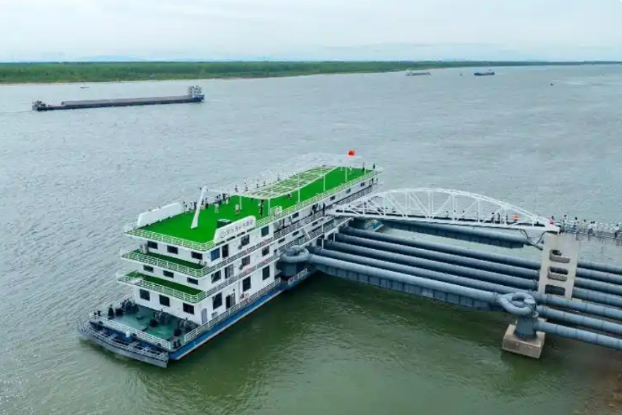 洪水港取水泵船是岳陽(yáng)市長(zhǎng)江北部補(bǔ)水工程一期工程其中一個(gè)項(xiàng)目。整個(gè)一期工程完成投資3.54億元,解決華容縣、君山區(qū)沿線(xiàn)95.87萬(wàn)畝耕地灌溉用水和生態(tài)用水問(wèn)題;二期工程總投資3.46億元,將擴(kuò)大補(bǔ)水受益范圍,新增優(yōu)質(zhì)水源保障人口5萬(wàn)人,改善灌溉面積42萬(wàn)畝。